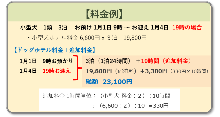 ※お預け時間とお迎え時間が同時刻の場合、追加料金は発生しません。